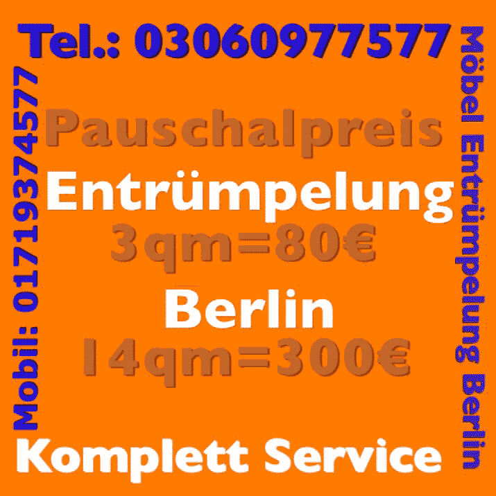 Türmen sich im Wohnung, Abstellraum oder in anderen Räumen jeden Menge Sperrmüll, alte Möbel anderweitige Gegenstände, die künftig nicht mehr benötigt werden, muss eine gründliche Entsorgung 80 Euro her. Wir bietet alle erforderlichen Arbeiten zum günstigen Komplettpreis. Im Wohnungsauflösung Angebot enthalten sind alle Leistungen von der Anfahrt über das Ausräumen bis hin zum Abtransport und der Entsorgung 80 Euro beim BSR. Buchen Sie uns - Bulky Waste Pickup 80 Euro sind mit unserem erstklassigen Service, jede Menge Praxiserfahrung viel Können im gesamten Raum privat für Ihnen da!